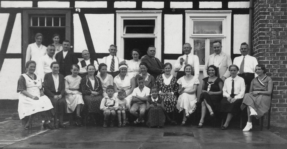 Im Hintergrund ist das im Jahr 1924 um den rechten Flügel erweiterte Familienhaus zu sehen.