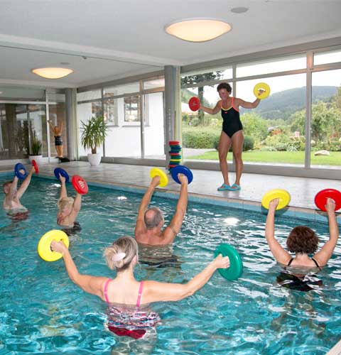 Wir laden Sie mehrmals pro Woche zu unseren erfrischenden Wohlfühlstunden ein: Nach einer die Durchblutung fördernden Bürstenmassage und anregenden Kneippanwendungen steigen Sie ins wohltemperierte Wasser, wo Sie Ihre Fitness, angeleitet von unserer Trainerin, sehr gelenkschonend und mit viel Spaß stärken. Fordern Sie sich ruhig ein wenig. Sie werden am Ende belohnt: mit ein paar ausgleichenden Lockerungsübungen und einem wunderbaren Körpergefühl.